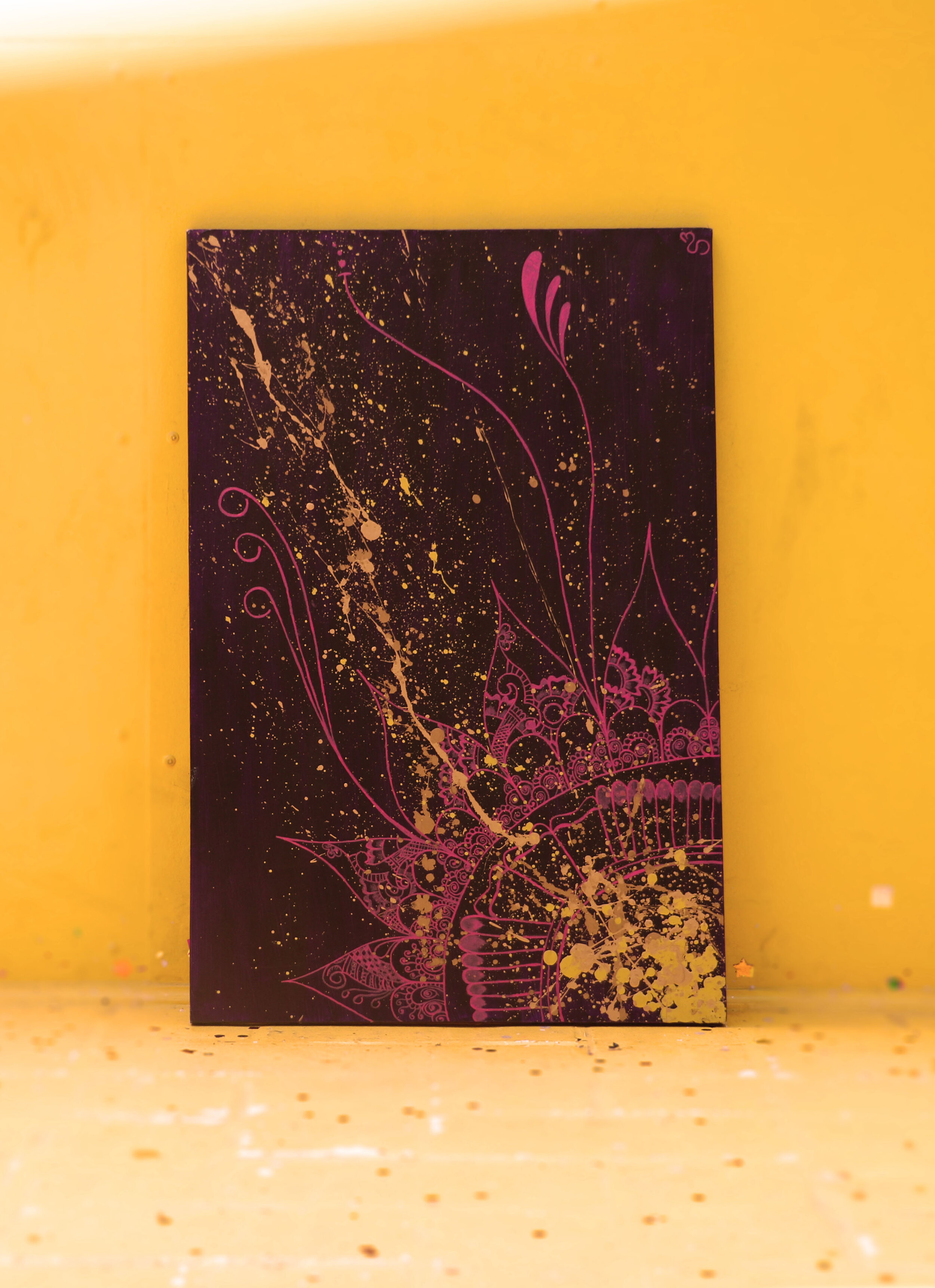 Painting is held by the crafter of the floating frame, Edley, who is the owner and creator of 3rd Coast Craftsman.