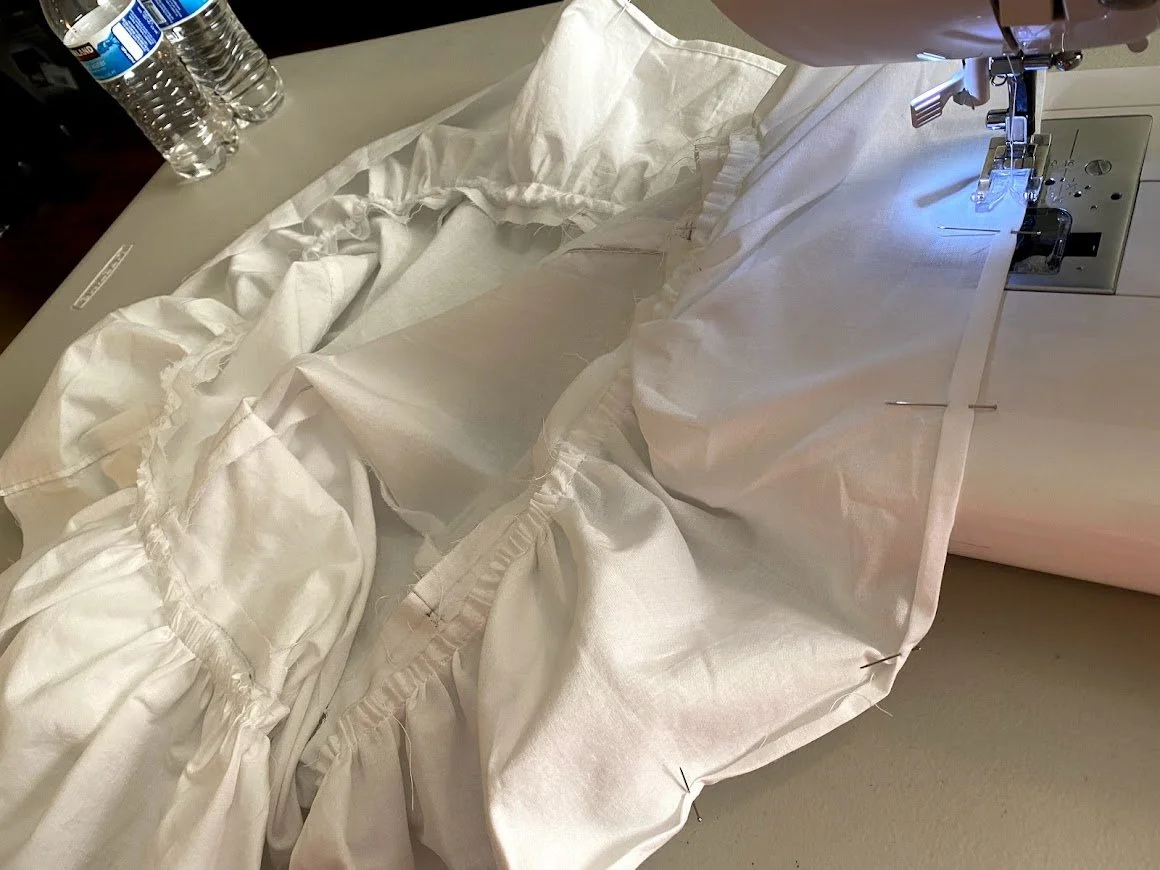 Step 8: I sewed up all of the seams for this slip by hand. Only the ruffle was hemmed and attached to the main slip by machine. I also did use the machine to hem the top of the slip and create the ribbons which were attached to the shoulders to be tied.